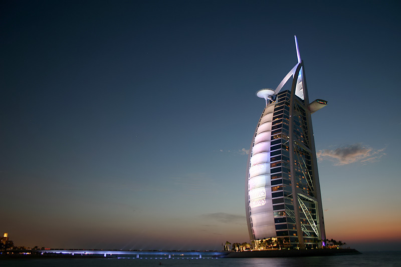 Burj Al Arab Hotel also known as 7 star hotel, the Dubai's most world famous Hotel which is built inside the sea at the lovely Jumeirah Beach with the hieght of 321 meters and specially in the night time Burj Al Arab refers an unforgettable sight, surrounded by the rainbow colours sculptures of water and fire. The Burj Al Arab hotel is also very famous because of its unique style of building , wonderfull beach and restaurants etc.